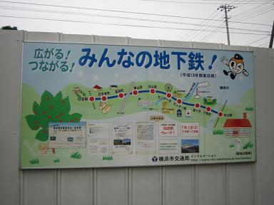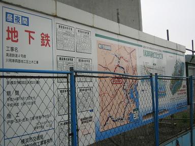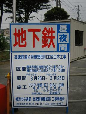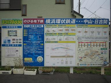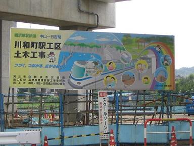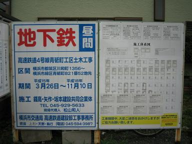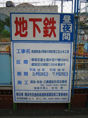 | 川和町駅から中山方面を見ています。 | 川和町駅工区の看板 |