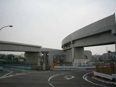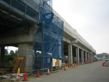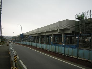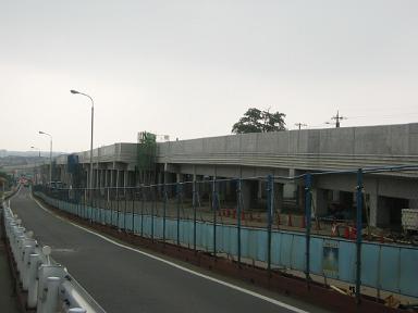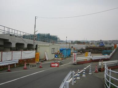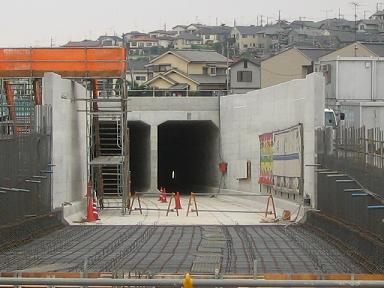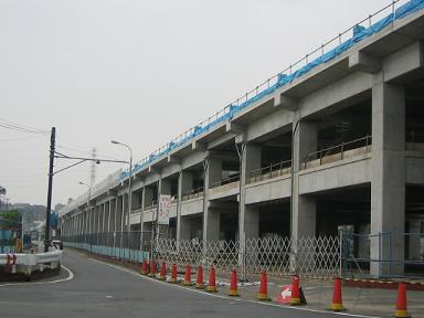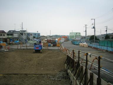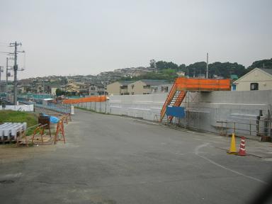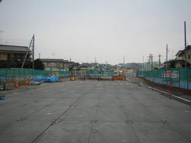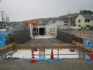 | 高架をくぐり反対側から葛が谷方面を見ています。 駅舎等の工事はこれから本格化されると思われます。 |