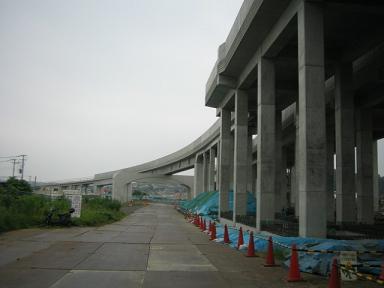 | 中山側に渡って見ています。 | 角度をかえて ここから先はまだ路盤ができていません。 |