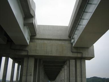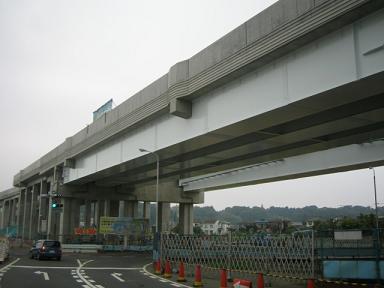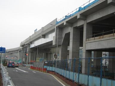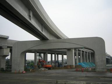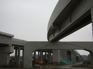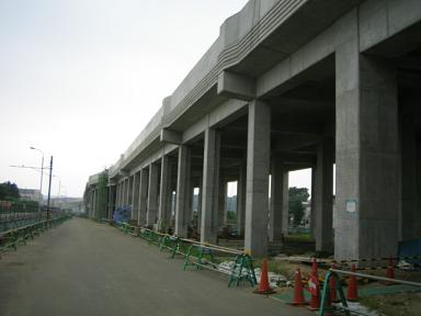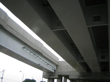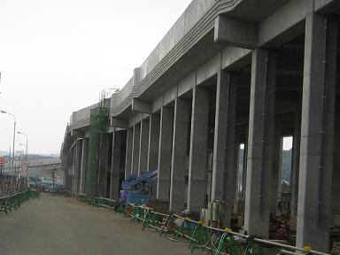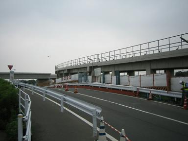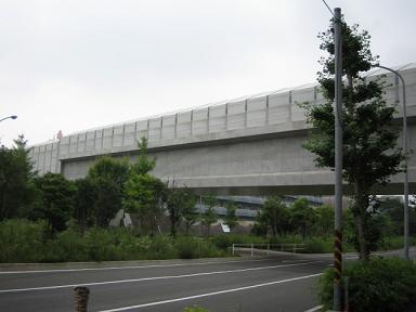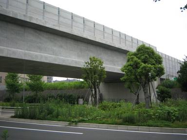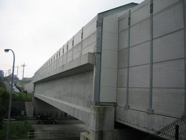 | 別角度から | 上部にまでコンクリート製の覆いがあります。 騒音対策は万全ですが、景色はたのしめそうもなさそうです。 |
