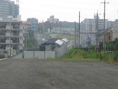 | 葛が谷方から川和町方面をみています。 背の高い塀が続いています。 |