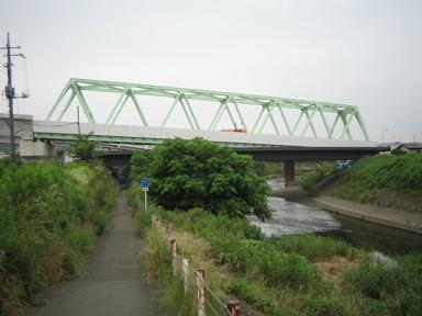 | 川和町側から恩田川橋梁を見ています。 | これが鶴見川の支流の恩田川になります。 |