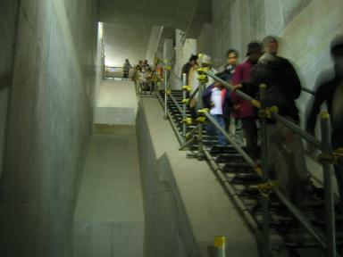 | 1度向きを変え、さらに階段を降りるとホームが 見えてきました。 |