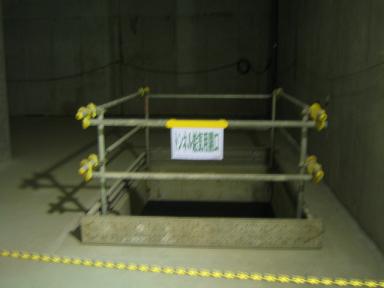 | 階段の様子。左側はエスカレーターが設置される場所です。 | トンネル喚起用開口部があります。 |