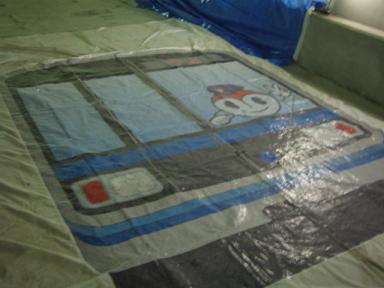 | まもなく終点が見えてみました。 | 地下鉄車両が描かれたビニールシートが敷かれていました。 |