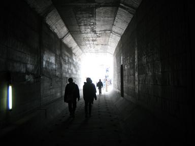| 左の階段から再びウォーク再開です。 | 中山側のトンネル入口になります。 |