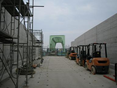 | 地上にはご覧のようにシールドマシンを入れた工事用の 基地があります。 |