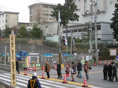| 慶応大学側です。 | 工事が進み、昨年までと通行帯が変わりました。 |