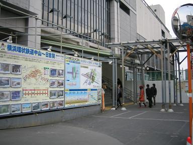 | 西口(日吉本町側)です。駅前にあるパネル | 東急日吉駅入口を見ています。 |