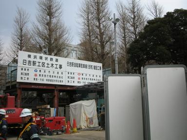| 日吉駅工区土木工事の看板がでています。 | 工事現場の中です。 |