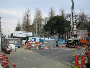 | 工事エリアが慶応大学側に移動しました。 | この付近は外からは目立った変化はありません。 |