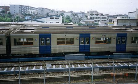 こうしてのんびりと車両基地で休んで いられるのも今のうち。湘南台開通後 は主力として日夜活躍が期待される、 3000系2次車。 |