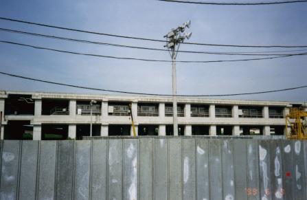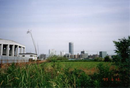 名称は新羽車両基地でも最寄駅 は新横浜北になる。 このあたりはまだ、空き地が多く、 その向こうに新横浜の街を望む。 |