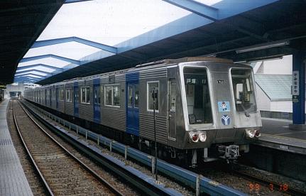 昭和47年の開業時からの車両。当初3両編成でデビューしたが、路線の延長に伴い、昭和52年からは5両編成になり、さらに、昭和59年からはすべて6両編成になった。ステンレスの車体でドア部分に立てに青の縞が入っているのが特徴。老朽化に伴い平成18年度までに全車引退の予定である。