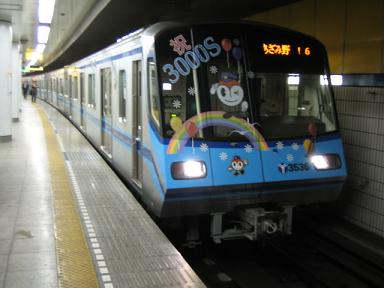 | デビュー記念のラッピングが施されています。戸塚駅 | 3000S形の車内 3000R形と全く同じです。 |