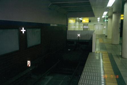 | 地下3階のあざみ野行のホームの反対側には使われていない別の ホームがある。実はここから3号線が分かれて山下町、本牧方面に 行く予定だったが、計画が中止になり、ホームだけがそのまま残る。 |