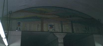 ドーム型ホームの入り口にある サッカーの壁画 三ッ沢下町側 |