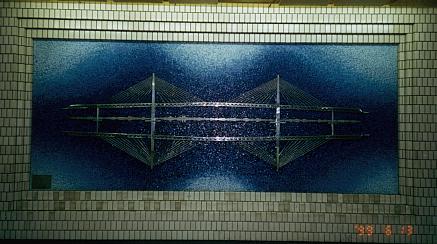 コンコースにある、海に映る ベイブリッジを描いた壁画。 |