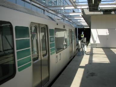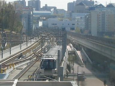 | センター北を出るとすぐにトンネルに入ります。 | センター北駅からセンター南駅方面を見ています。 Y線があることが確認できます。右側はブルーラインです。 |