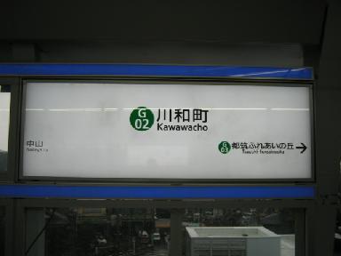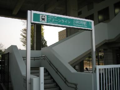 | 2番出口 | 道路を跨ぐ橋梁にもグリーンライン川和町駅とかかれています。 |