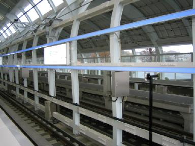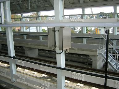 入出庫線も鉄骨で区切られています。 またこの入出庫線の方から1番線、2番線で、 本線が中山行が3番線、日吉行が4番線になっています。 |
