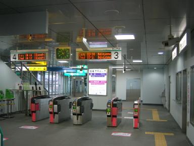 | 改札口の様子 | 車両基地へと分かれる入出庫線が中山方面を左に分かれます。 |