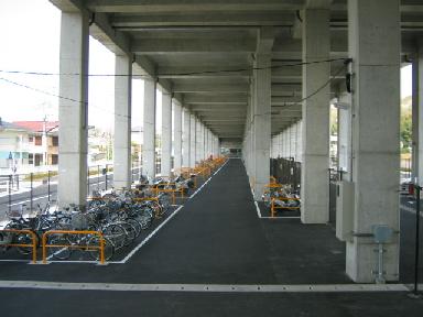 | 1番出口は駐輪場からの出入口になっています。 | こちらが高架下に広がる駐輪場 |