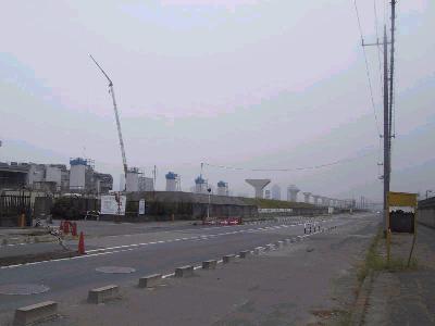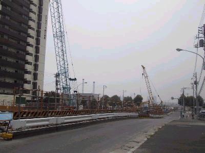 | 豊洲駅交差点よりの394号橋脚 上部の木枠がとれてすっきりとした姿をあらわした。 |