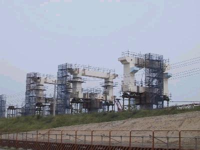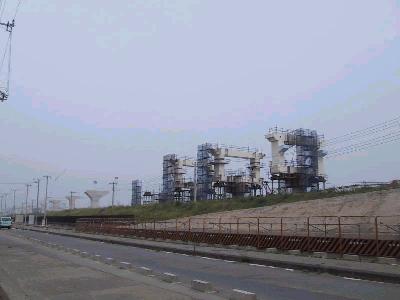 389〜385号橋脚の建設現場。 基礎工事が続いている。 |