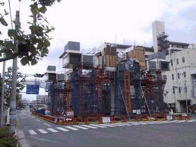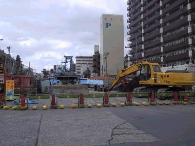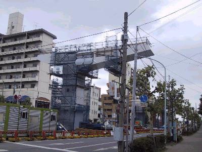 駅部分の工事に進展が見られた。この先、だんだんと駅らしい 形が現れてくると思われる。 |