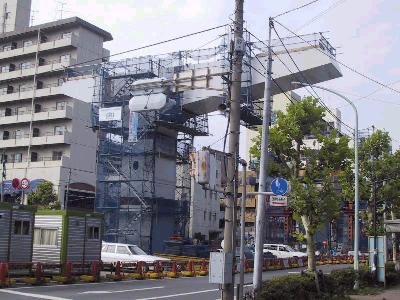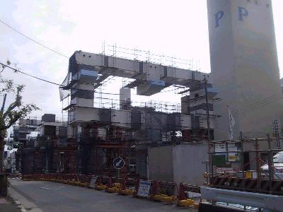 | 394号橋脚には特に変化はないのですが... | 393号橋脚には大変化です。箱状になりました。 下の部分がコンコース、上の部分がホームになります。 |