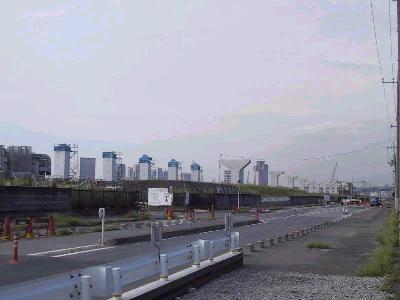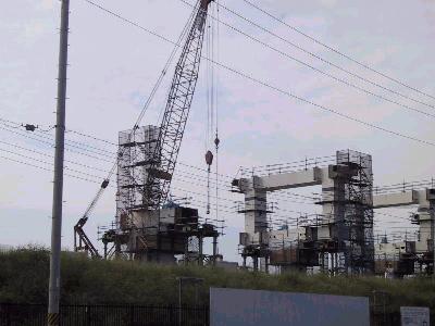 | 豊洲(1)は上の豊洲(2)に比べて、かなり工事が進捗しています。 | 現在、一番手前の橋脚を他の4本と同じように、箱型にする工事の 真っ最中です。 |