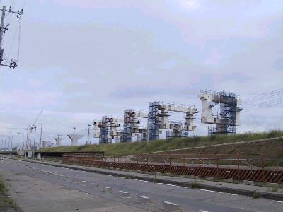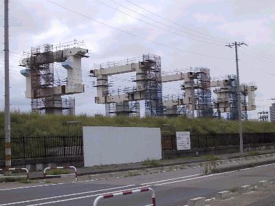| 5本の箱型ができています。 | 豊洲(1)仮称から豊洲方面へと続く橋脚群 |