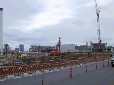 \以前にはなかった工事用のフェンスが設置されました。 これから工事が本格化すると思われる ↑とりあえず、ショベルカーが入って、工事が始まってるが、 新交通の工事とは明記されておらず、一連の再開発の工事と 思われるが、新交通の基礎部分にもあたるので、これも併せて 行われるはずである。 ←豊洲(2)仮称は特に変化はみられない。 |