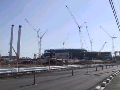 | 豊洲(2)仮称から豊洲方面を眺める | そして、豊洲(2)仮称 とうとう5本の箱型が姿をあらわした。 |