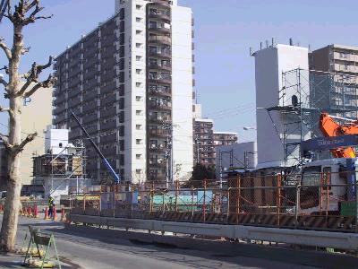 | 豊洲(2)駅の手前は整地作業が進んでいる。 写真左側で建設が進んでいるのは東京電力の豊洲変電所である。 |
