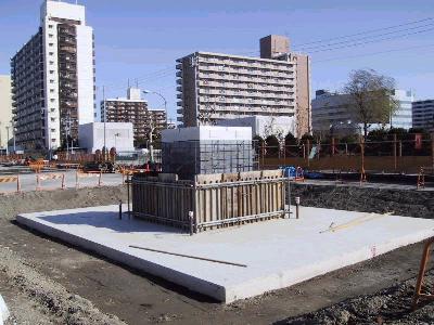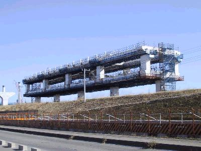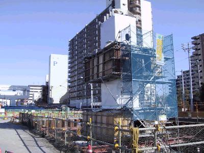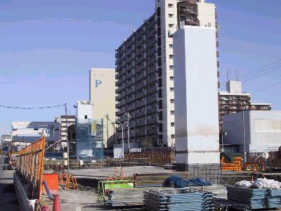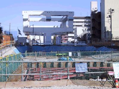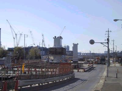 | ここはまだ基礎工事中ですが、下に土台も見えてきていますので、 もうすぐ橋脚が立ち始める模様。 |