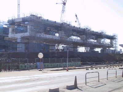 豊洲(2)駅は写真からみて奥の部分もだいぶ出来てきた。 ←の階段もコンコースとホームがつながった。 |