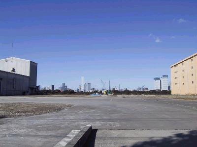 少し分かりにくいですが、この先、晴海までは運河で隔てられているので 橋がかけられます。奥に見える高層ビルは晴海トリトンスクエアです。 |