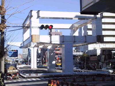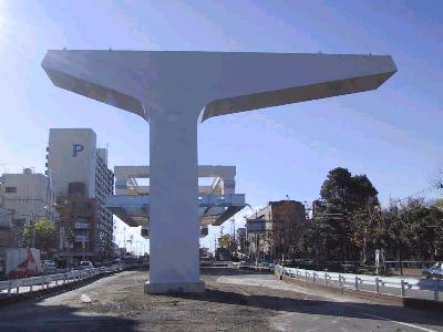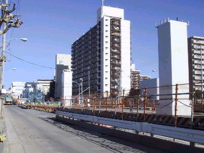 | 豊洲駅前交差点から | 豊洲駅前交差点から少し入ったところから 2本の橋脚が橋梁で繋がってます。 |