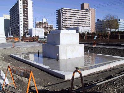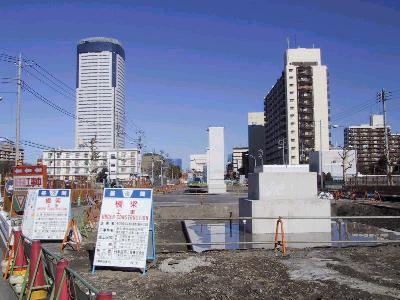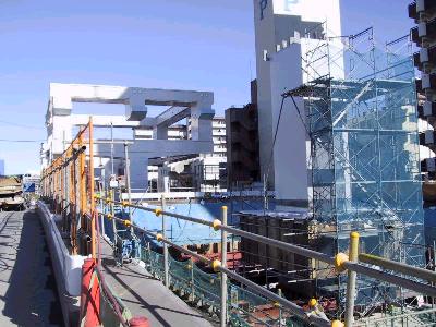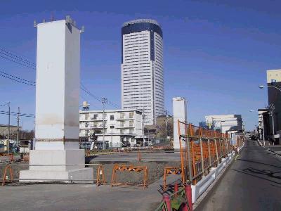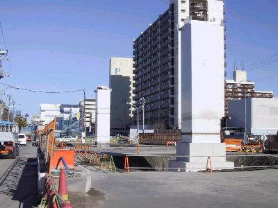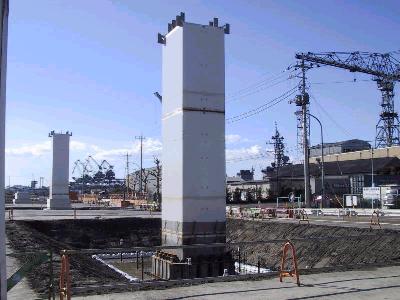 | 今度はやや正面に角度を変えます。 | さらに入ったところに5番目の橋脚があります。 現在のところ豊洲駅付近の工事ではここが一番先になります。 |