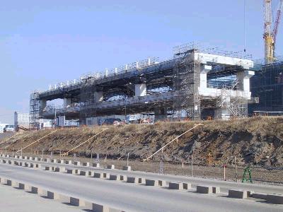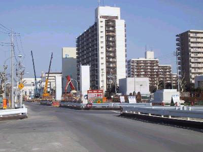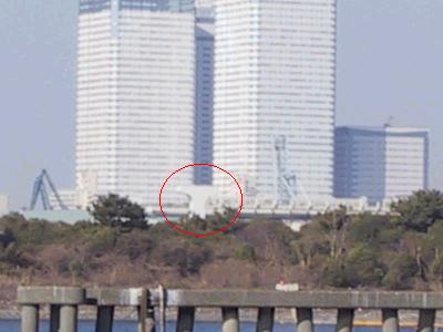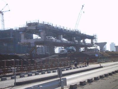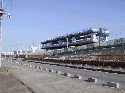 別角度から 計3本の橋脚が確認できます。一番左はまだ建設中のようです。 残念ながらこの橋脚の付近には近づくことができないので、 望遠での撮影です。 |