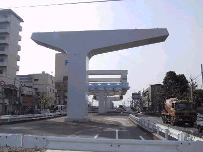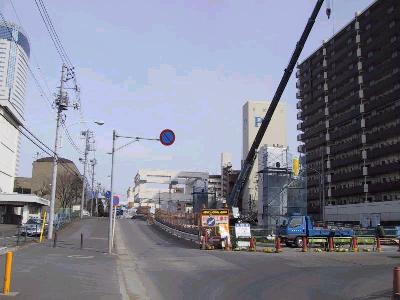 | 駅前付近は工事自体が行われていないようです。 | 少し先の橋脚部分はくレーンが入り、工事が進んでいますが、 先週から目立つような変化はありません。 |