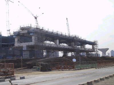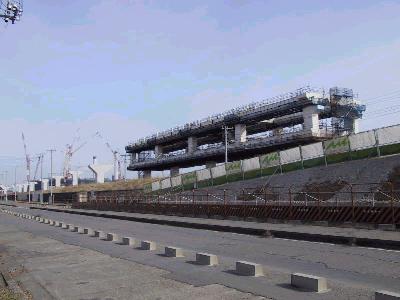 先週も紹介しましたが、運河を渡った豊洲(1)寄りに橋脚が 立ち始めています。この写真では2本の橋脚が確認できます。 昨年まではあまり工事が進んでいなかった有明北付近ですが、 今後、この付近でも工事が盛んになると思われます。 この模様をできるだけ取材をしてお伝えできればと思って おりますので、どうぞご期待ください。 |