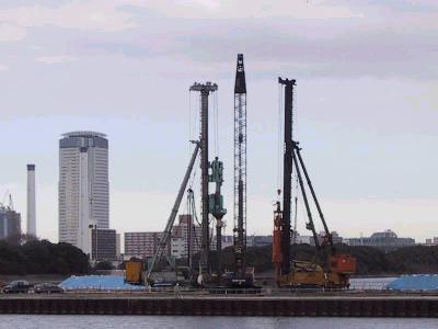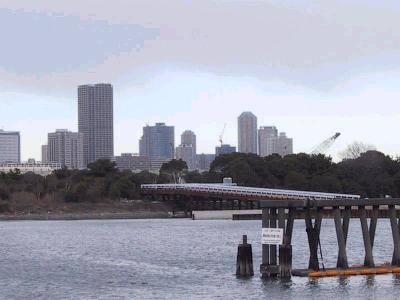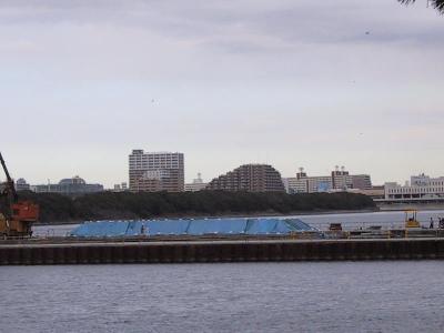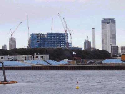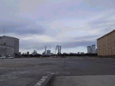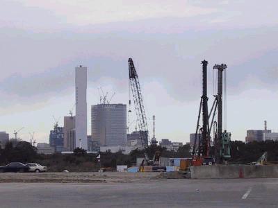 | 対岸の豊洲側から順番に見てみます。 | 豊洲側には工事の基地があります。 |