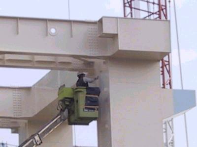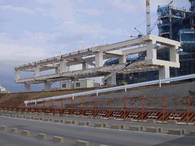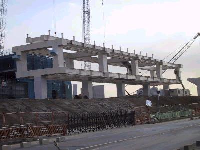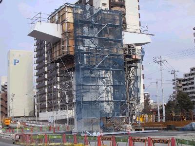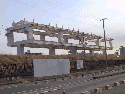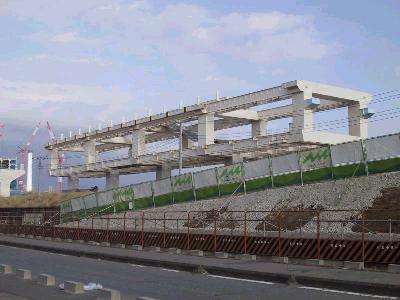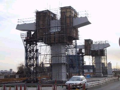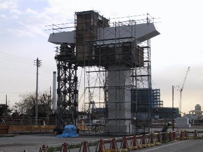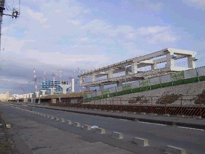 | 豊洲駅付近ですが、2本の橋脚に腕がつきました。 | 別角度から。 |
