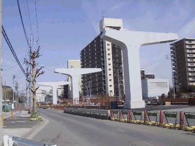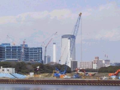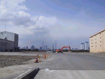 | 豊洲(1)−有明北間 | 近くからではないので、どこがどの程度進んでるのがよくわかりませんが、 クレーンが入ってるとこを見ると、工事がすすんでいるのでしょう。 |
