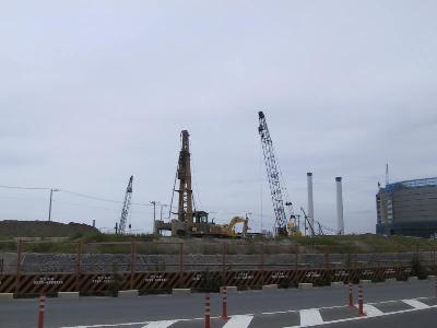 | 豊洲−豊洲(2)間、クレーンが入りはじめました。 道路の整備かゆりかもめの工事かはまだ定かではありません。 |