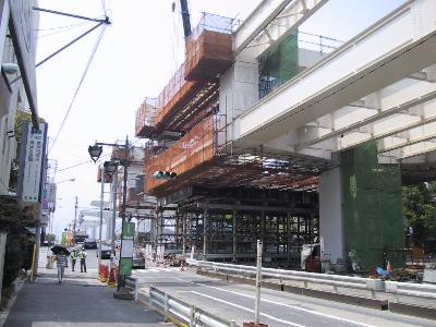 | この場所からでは大して変わったようには見えません。 | 電信柱が立っていて分かりにくいのですが、 とうとう駅が1つに繋がりました。 |