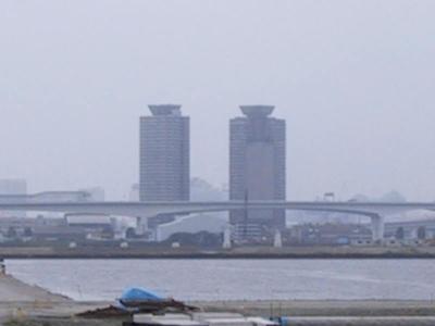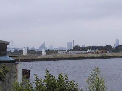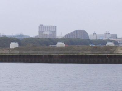 | さらに近くまで寄ってみました。右と左で高さが違います。 | ←の写真のやや右側(豊洲1より)を撮影しました。 |